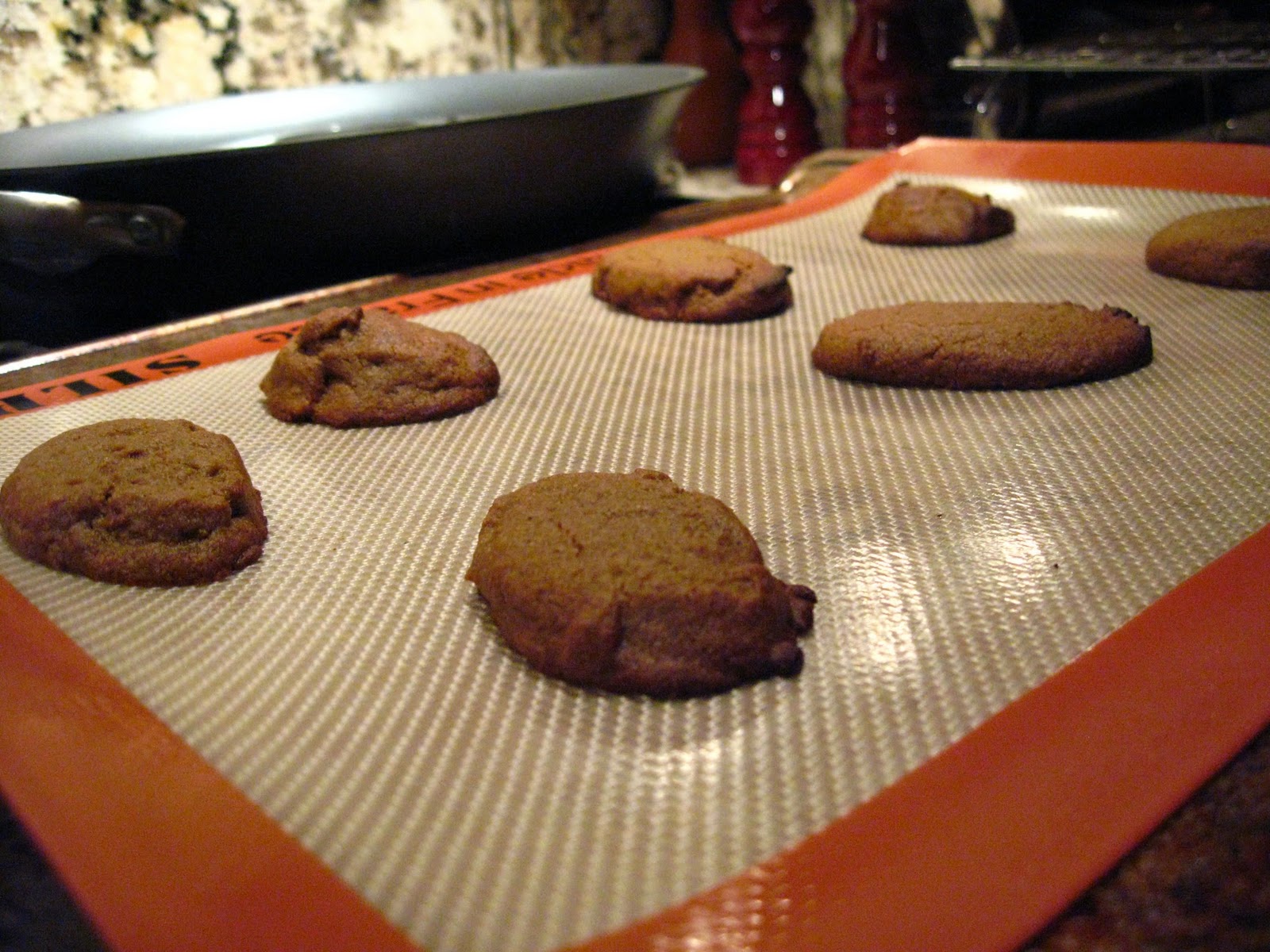 I was pleased overall with how these turned out, but I still prefer the traditional version. The oat flour made the texture a little powdery, but the flavor was amazing! The combination of molasses and agave in place of corn syrup (as the original recipe asks for) really adds a powerful aroma of spice, and an added benefit of healthy iron, calcium and potassium (plus MUCH more!) to each crispy little cookie.