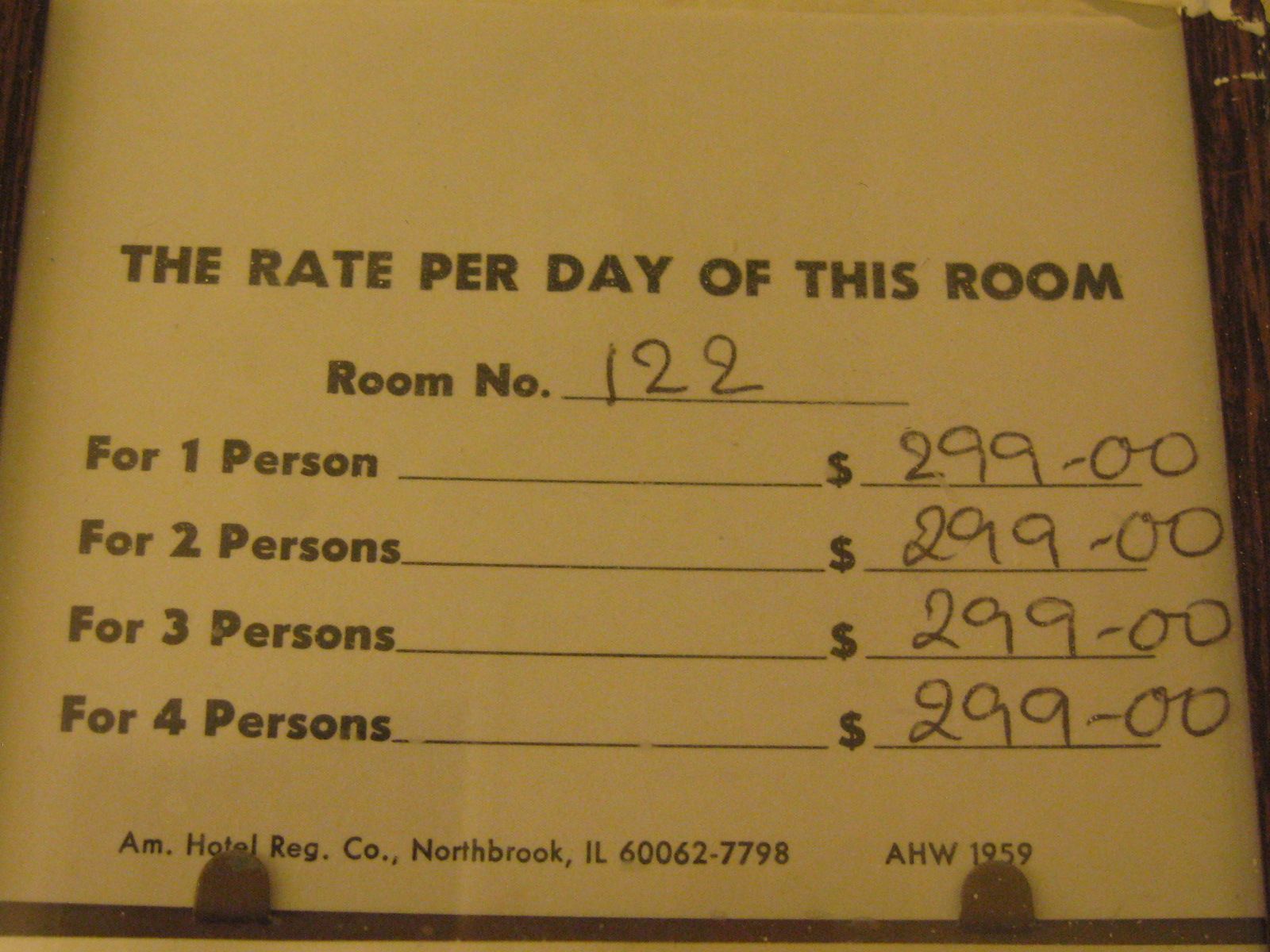 You can purchase threadbare sheets, lumpy pillows, scratchy towels and ripped comforters for these low prices!!! I’d love to purchase the coffee maker, iron and ironing board, but our room seems to be without those – yet somehow we have two fridges.