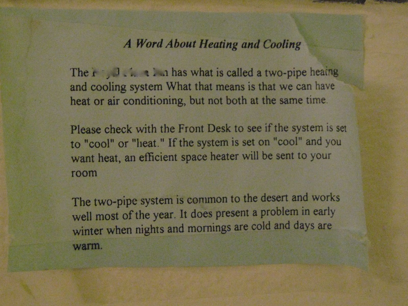 Indio hotel “thermostat”.