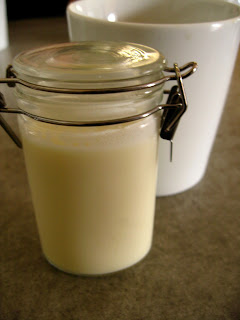 While I pondered, our waitress brought out heavenly pots of caffeine, accompanied by this cute glass container filled with steamed soymilk.