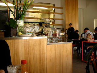 While I pondered, our waitress brought out heavenly pots of caffeine, accompanied by this cute glass container filled with steamed soymilk.