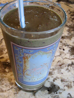 I started the morning in the usual way: 3 cups of spinach, 3/4 a cup of unsweetened soymilk, the juice of half a lemon, 1/4 a cup of frozen cherries and 1/2 of a banana.