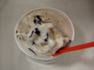 Get ready for this: I ATE DAIRY! AAAAH! This had one scoop of peanut butter/caramel, one scoop of turtle cheesecake, and one scoop of amaretto chocolate chip. It actually helped me feel better, believe it or not! BELIEVE IT!