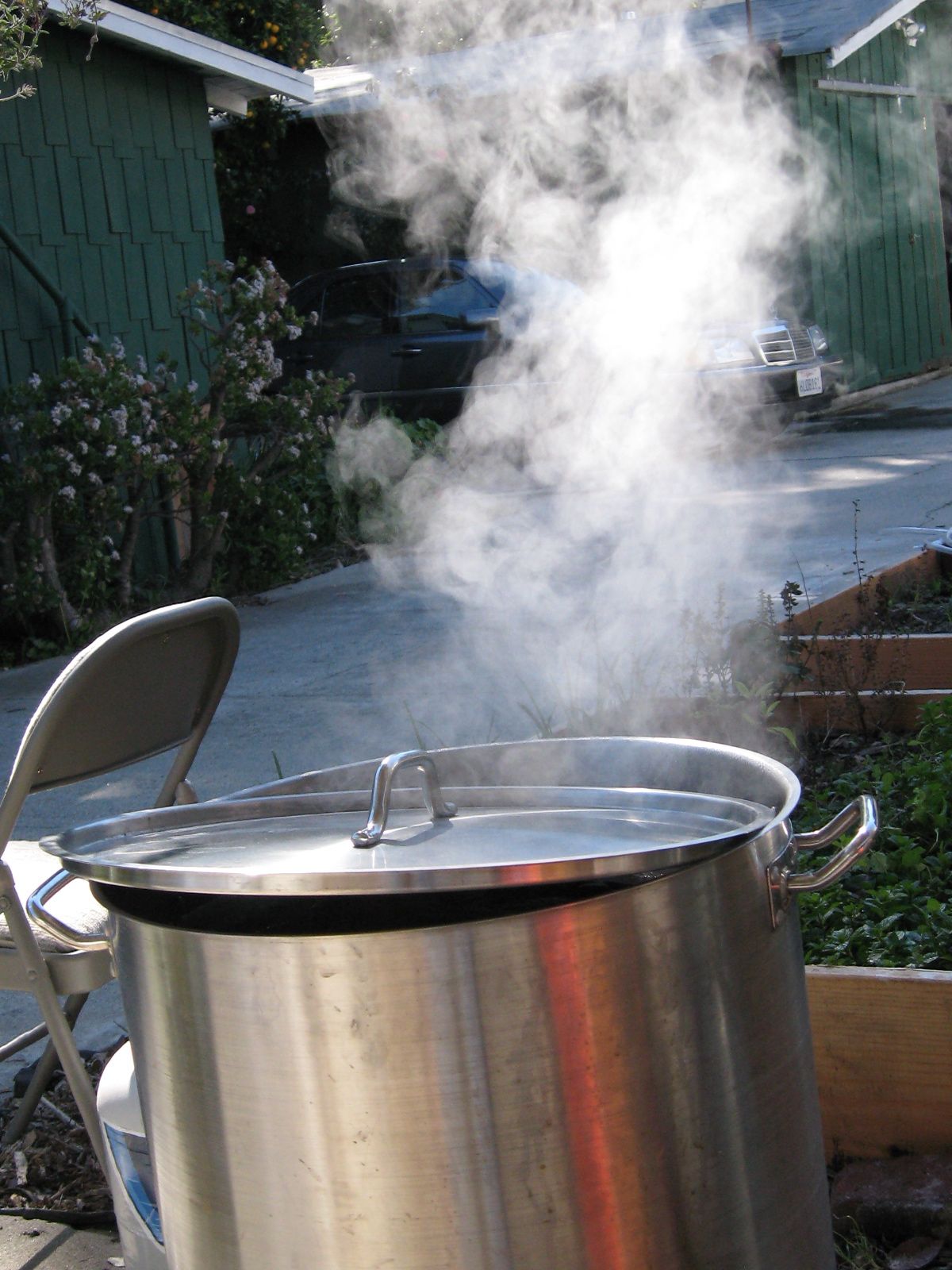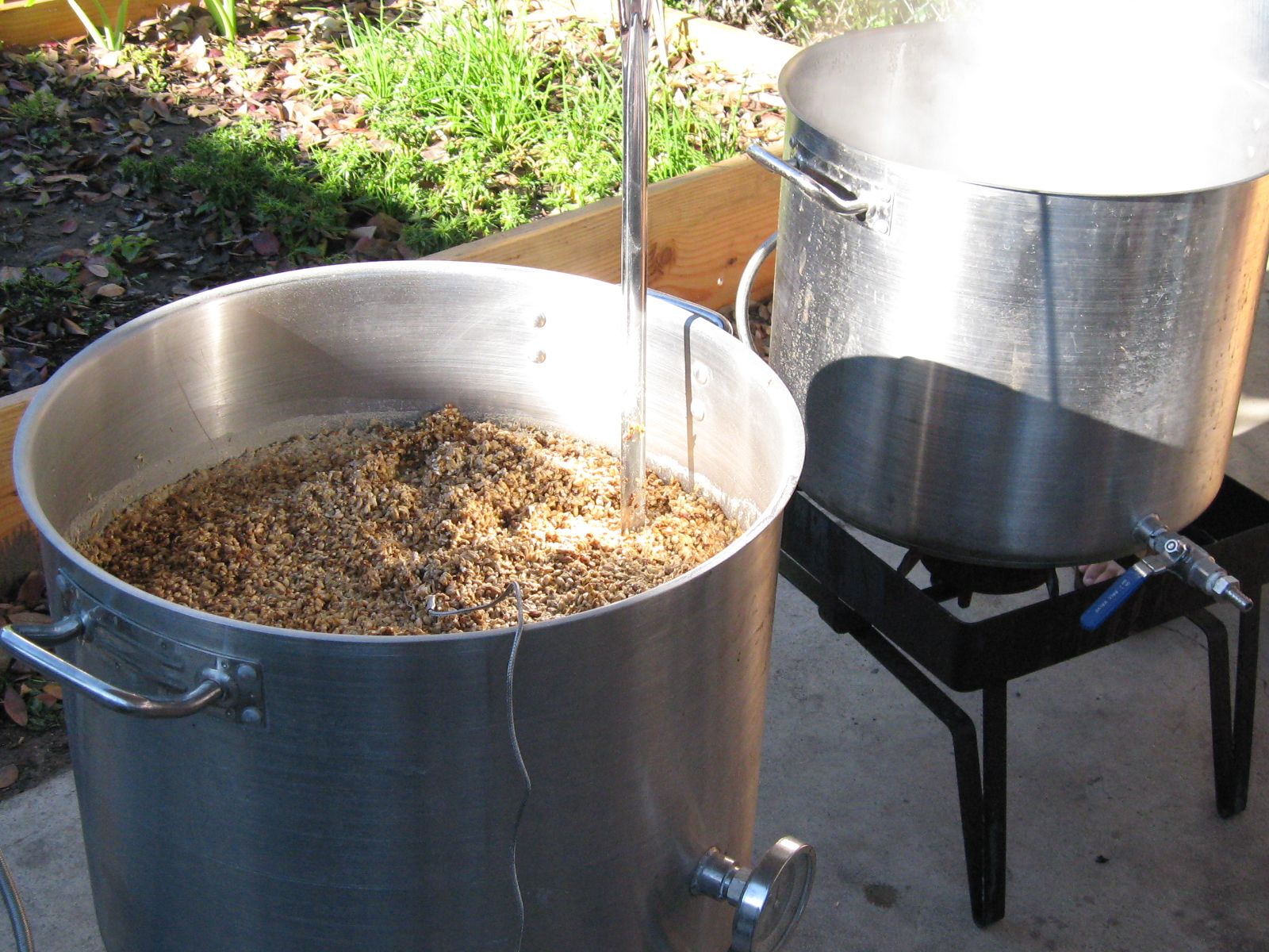 Frank the Tank already had his mash (the grains are submerged in water and raised to a temperature that breaks down the starches into sugars) ready to sparge.