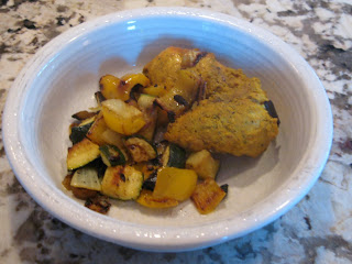 I came home to an awesome dinner that the roommates had made – Indian-spiced chicken tenders and grilled vegetables.
