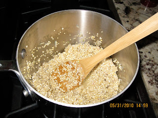 2. Add rinsed quinoa and mix with shallots and olive oil to toast.