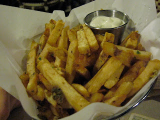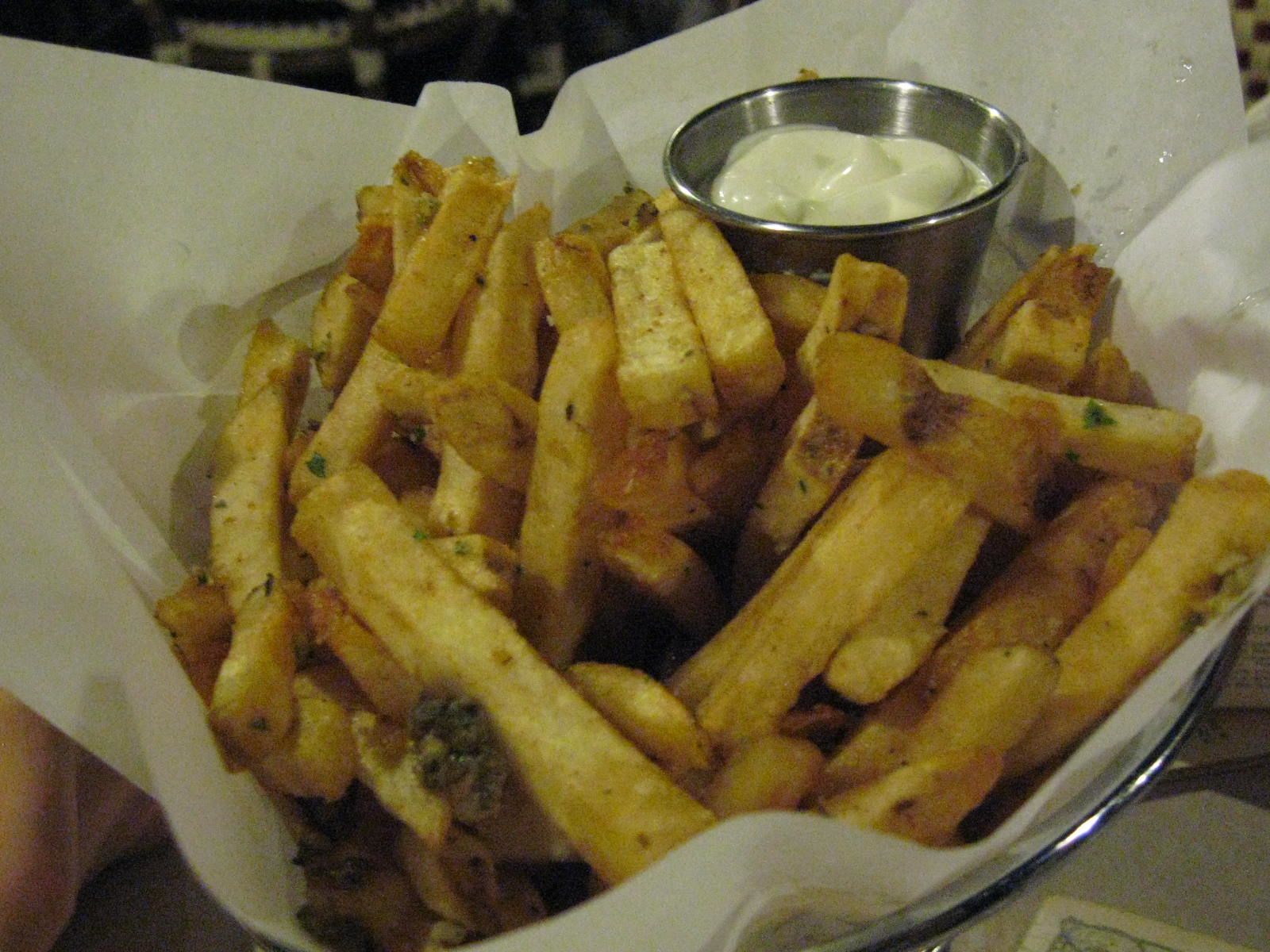 We had spicy chicken skewers with curry sauce and peanut sauce and Irish potato skins.