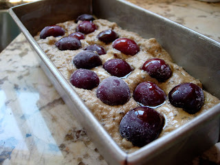 Since I had gone to all the effort to make my CocoButta, I decided to put it to good use and make Angela’s Summertime Cherry, Banana, Coconut Butter Bread. This recipe has been on my mind since she first posted it in June. Prep was very easy – I find that vegan baking setup generally is very fast.