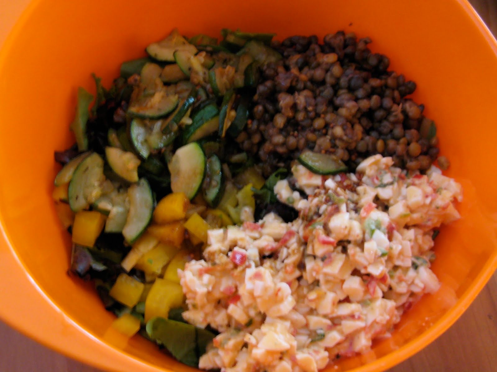 Lunch was a cup of Progresso lentil soup with fresh spinach and a teaspoon of goat cheese mixed in.